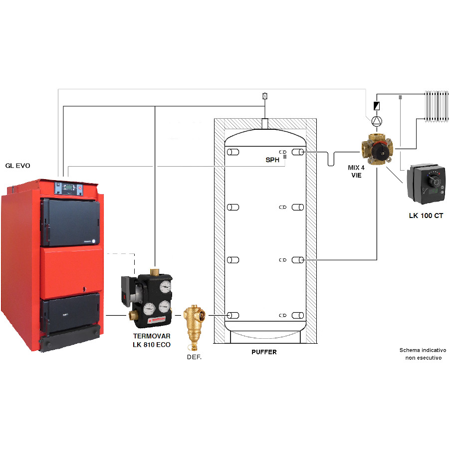 Sistema completo con caldaia a legna a fiamma inversa serie GASELLE EVO e puffer – ” L1 EVO “