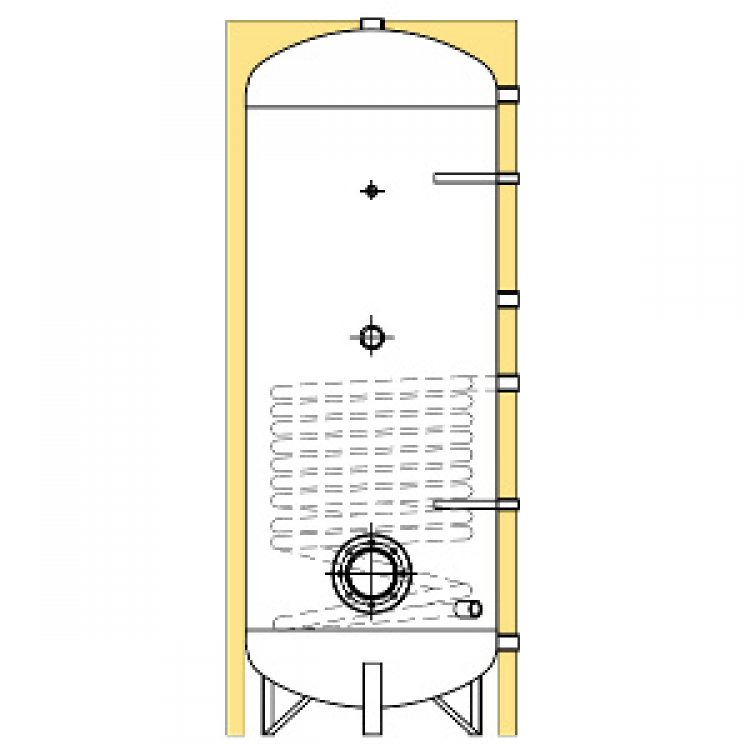 Puffer flangiato da completare mediante piastra di completamento cieca superiore con attacco 1”1/2 oppure con piastra forata per l’inserimento di scambiatore in rame per produzione A.C.S.. Accumulatore Primario in acciaio al carbonio grezzo internamente, esternamente trattato con vernice antiruggine. Completi di isolamento in poliuretano morbido spessore 100mm* e mantello PVC. Per volumi da 300 a 2000 litri.